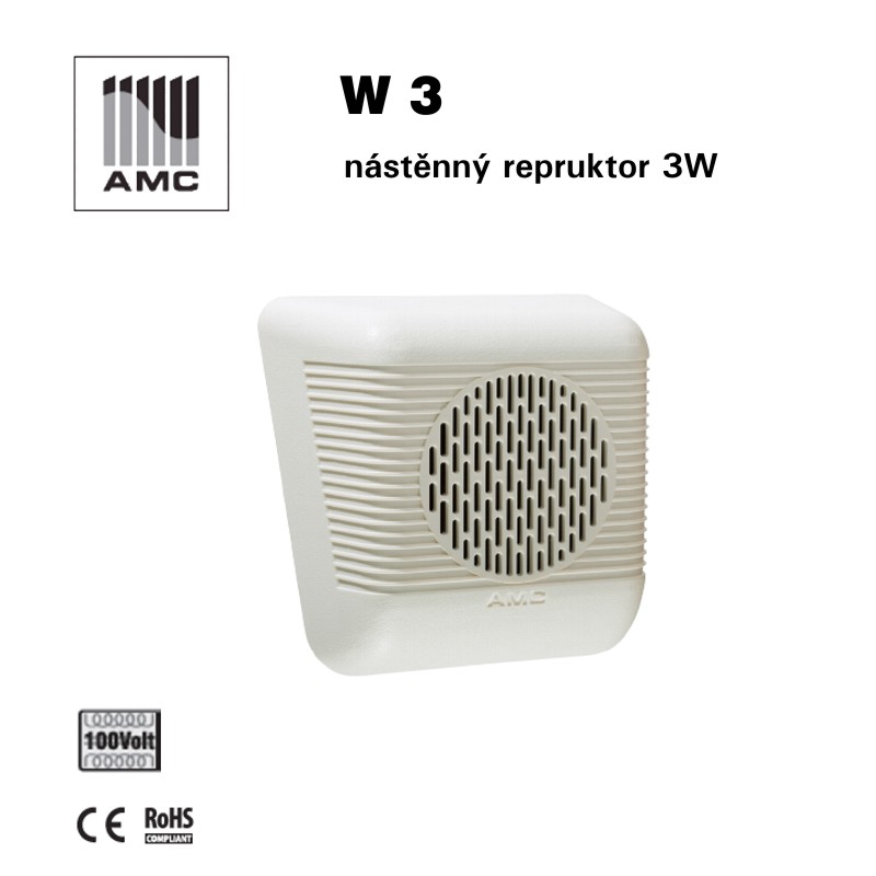 Nástěnný reproduktor W3 je se vyznačuje celoplastovou skříňkou z ABS plastu. Reproduktor obsahuje transformátor pro 100V rozvod s výkonovými odbočkami a celopásmový 4" (101mm) reproduktor. Velmi snadná montáž na jakokoliv plochou podložku případně strop. Idelání jako reproduktor pro instalace 100 V rozhlasu pro hlášení i hudbu na pozadí. Je vhodný pro instalace do veřejných budov, jako jsou čekárny, kanceláře, obchodní jednotky apod.
