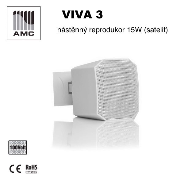 VIVA 3 je dvoupásmový reprobox s platovou skříňí a kovovou mřížkou kryjící vlastní reproduktor. Jedná se njmenší reprobox z produktové řady VIVA a kombinuje příjemný design a výborný zvuk. Má zabudován transformátor pro rozvody 100V, ale může být připojen také do nízkoimpedančních rozvodů. Reprobox je vybeven elegantním úchytem na podložku. Reprobox obsahuje woofer 3" a tweeter 1". Ve spojení s pasivním subwoofrem SUB 100V velmi vhodný pro ozvučení barů, restaurací, alternativních butiků apod.