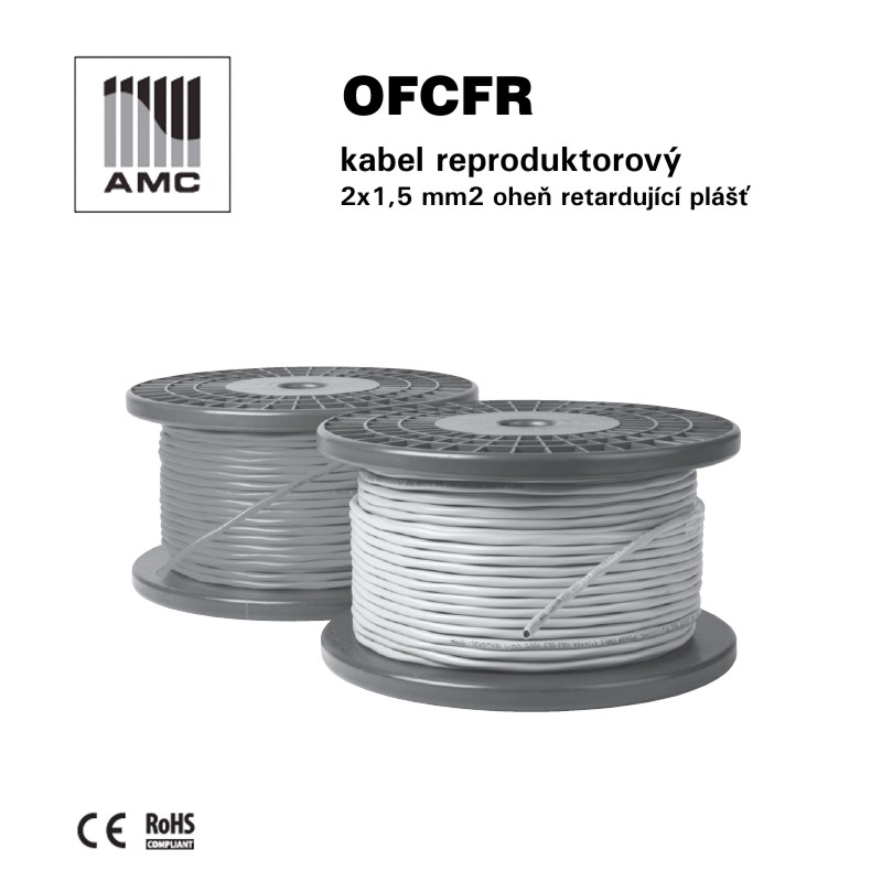 AMC reproduktorový kabel 2x1,5mm OFCR 2x1,5skladem33,00 Kč/ m27,27 Kč bez DPH