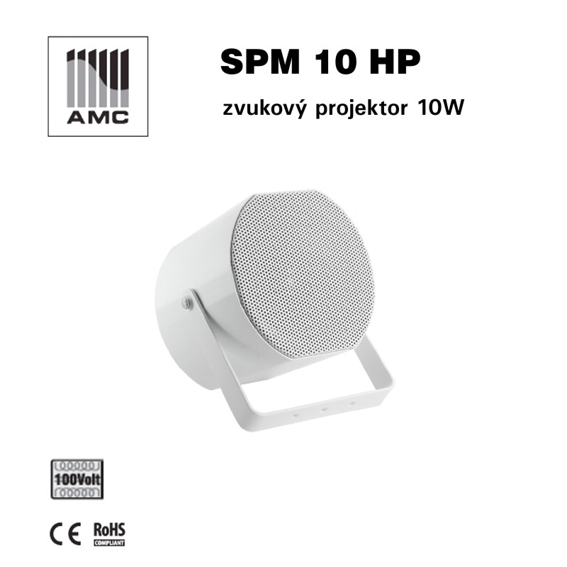 SPM 10 HP je kovový zvukový projektor o výkonu 10 W ze zabudovaným transformátorem 100 V a výkonovými odbočkami. Základní charakteristiky reprodoktoru jsou celopásmový reproduktor, hliníkové tělo, U konzole pro připevnění na stěnu, a stupeň krytí IP 66. Dále pak kvalitní reprodukce zvuku v širovém frekvenčním pásmu, akutiský tlak 91 dB a vyzařovací úhel 145. Je určen pro přehrávání hlášení a hudby na pozadí v systémech místního rozhlasu. Je určen jak pro vnitřní, tak i pro venkovní instalaci.