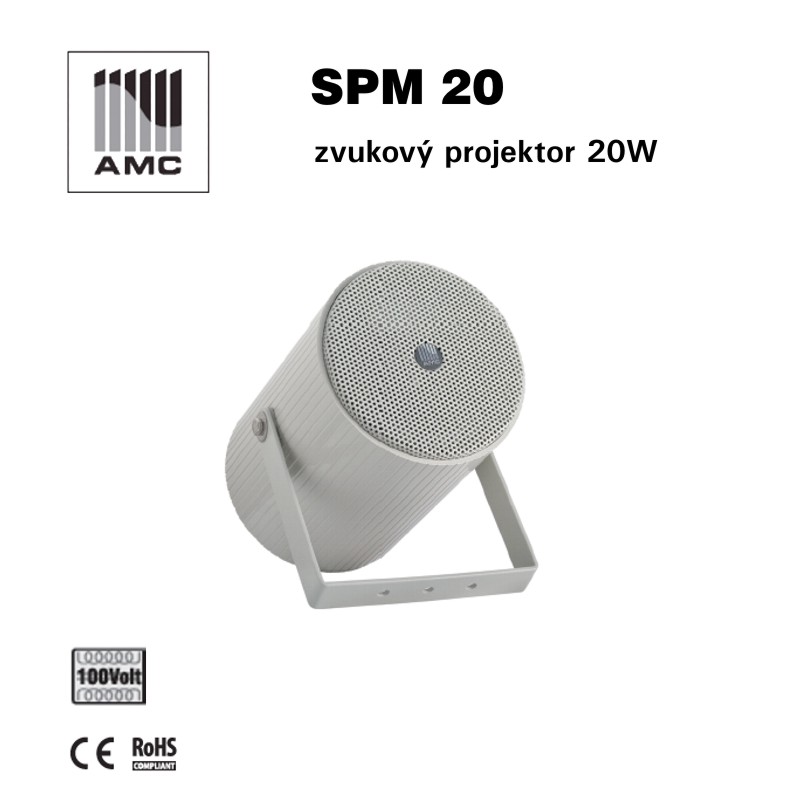SPM 20 je kovový zvukový projektor o výkonu 20 W ze zabudovaným transformátorem 100 V a výkonovými odbočkami. Vyznačuje se vlelmi dobrou kvalitou přehrávání hudby a slova. Základní kvalitní reprodukce zvuku v pásmu 130- 15000Hz, U konzole pro připevnění na stěnu, a stupeň krytí IP 55. Projektor má zabudovaný 5" celopásmový reproduktor. Je určen pro přehrávání hlášení a hudby na pozadí v systémech místního rozhlasu v supermarketech, bazénech, obchodních domech, průmyslových objektech, nádražích, parkovištích apod. Je určen jak pro vnitřní, tak i pro venkovní instalaci.